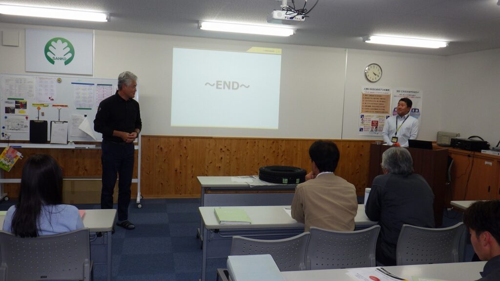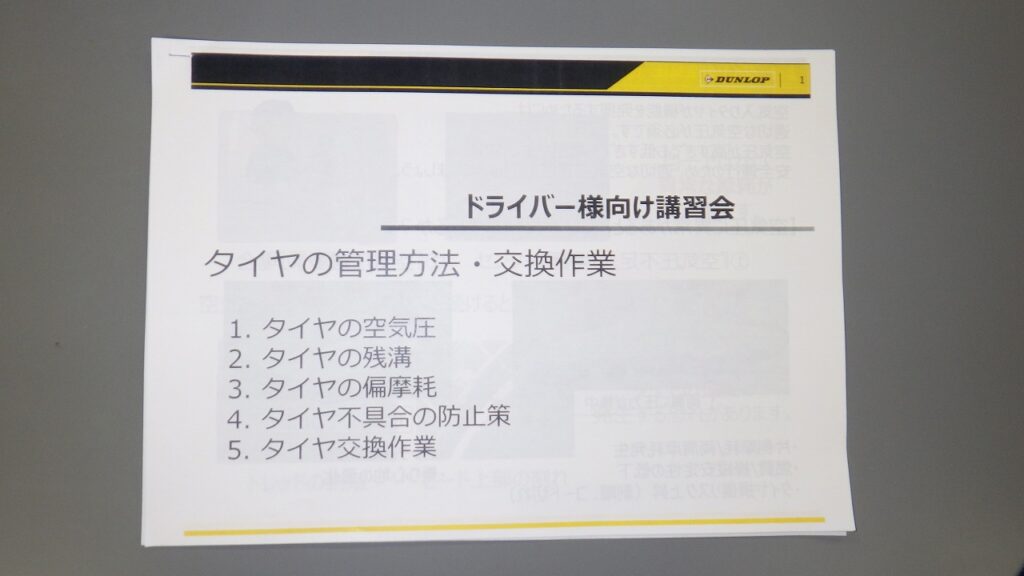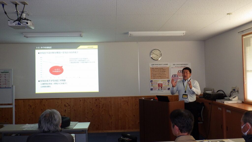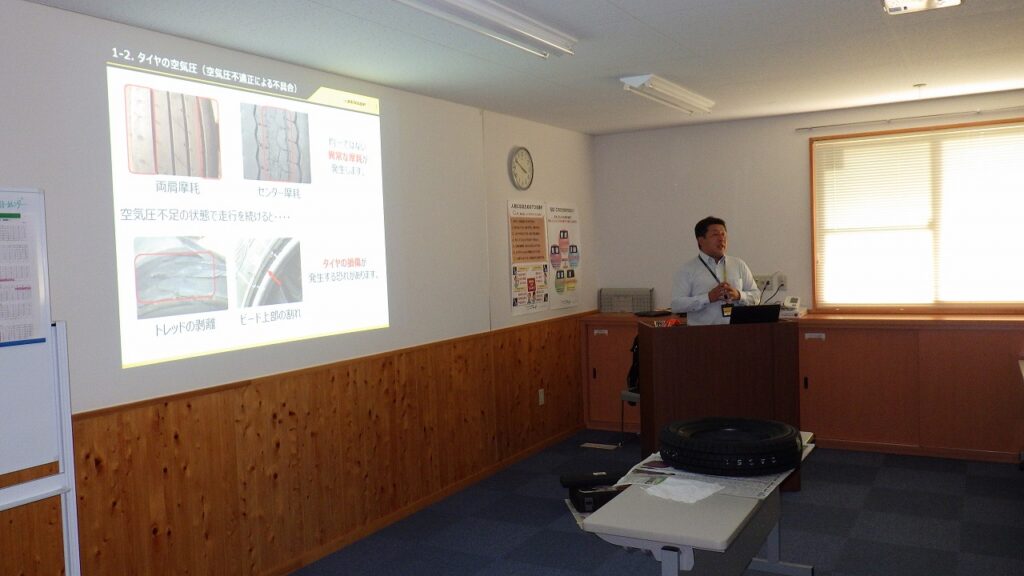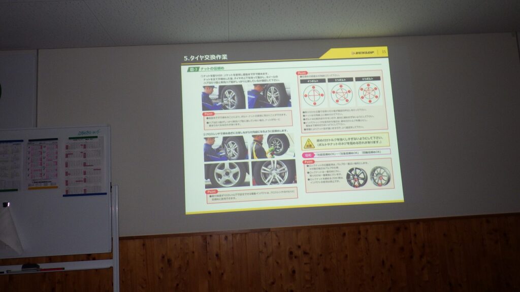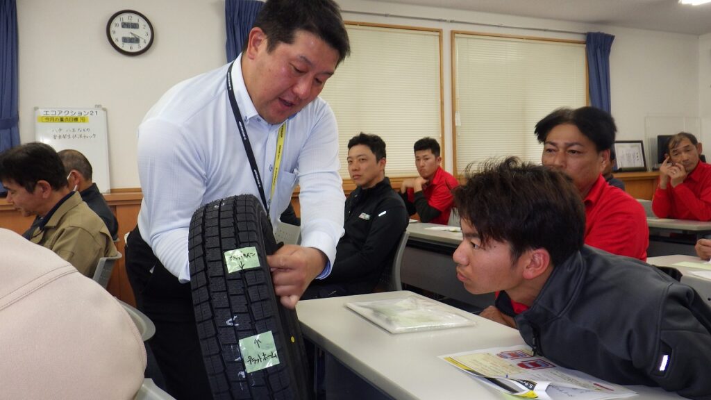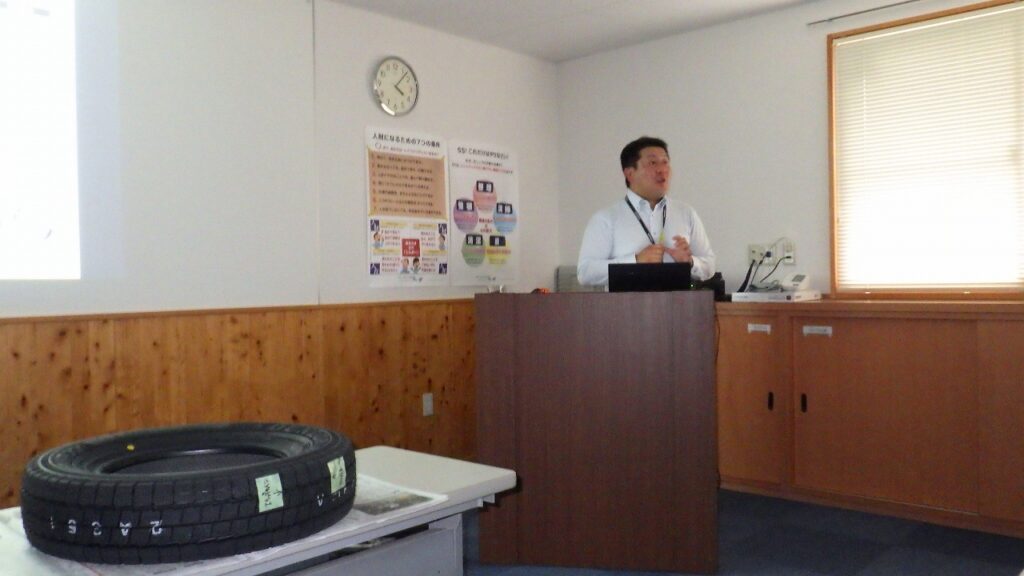 株式会社ダンロップタイヤ「タイヤランドいずも」の大原さんを講師としてお招きして、約30分の勉強会をしました。